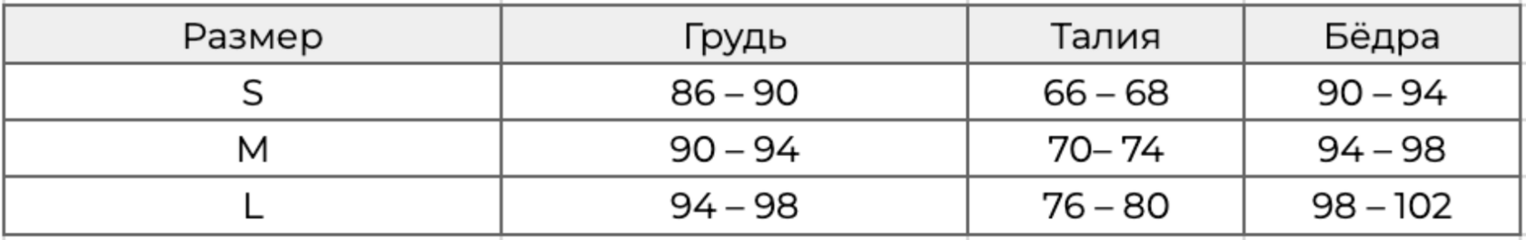Таблица размеров